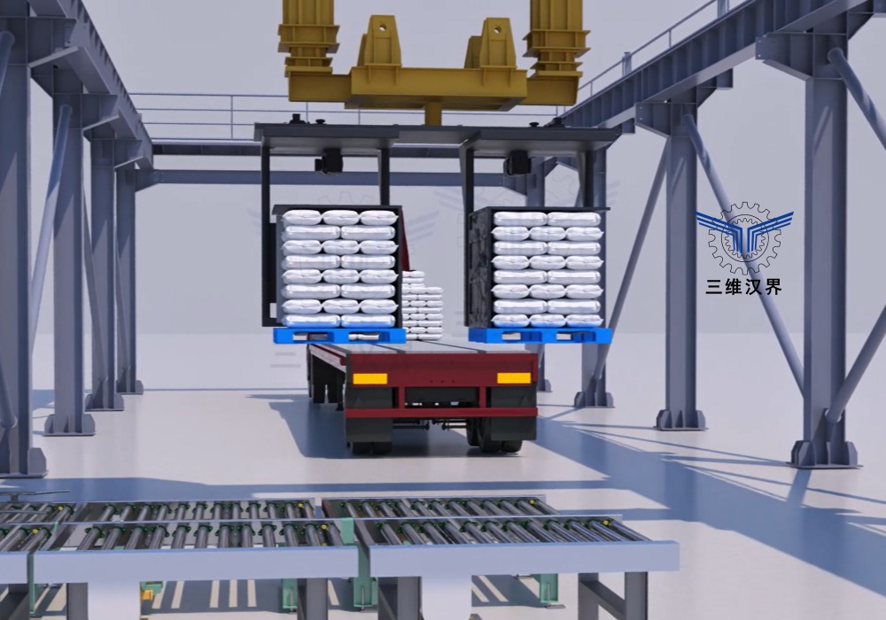 如果是推板式,推板會向前運動,將最前面的一層貨物從托盤上“推”到等待的裝車臂或傳送帶上,同時后面的貨物被擋板擋住。托盤則被保留在翻轉機構上。