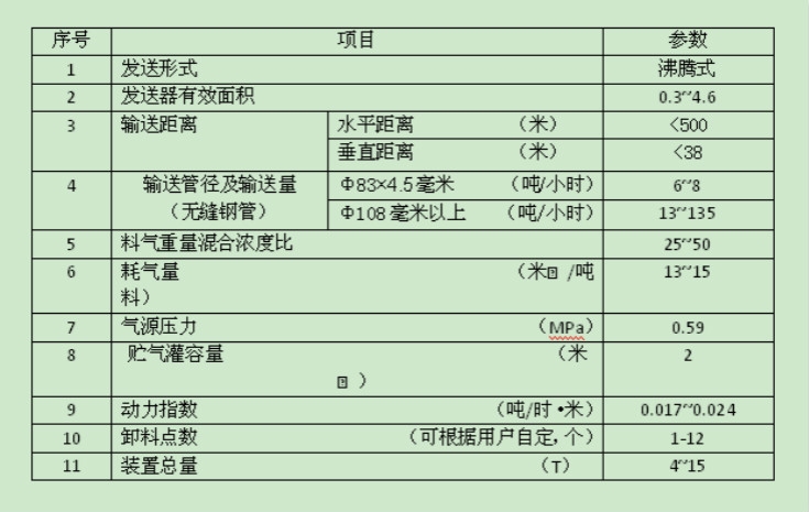 ZSF系列沸騰式壓送氣力輸送系統(tǒng)主要技術(shù)參數(shù):